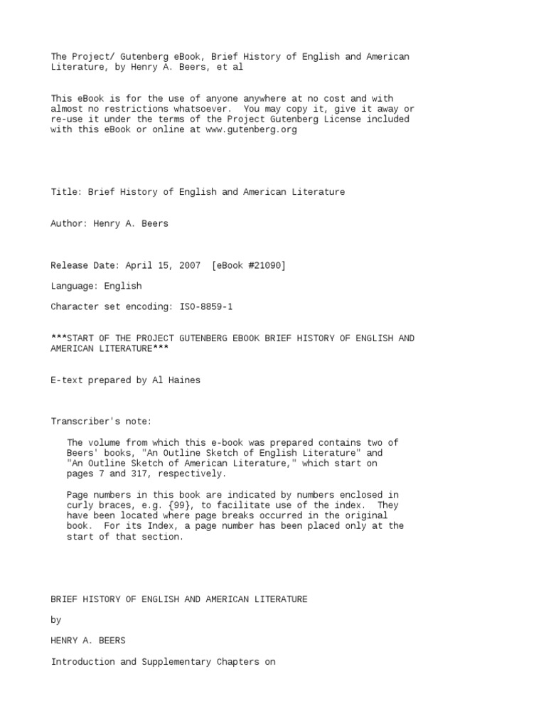Brief History Of English And American Literature By Beers Henry A