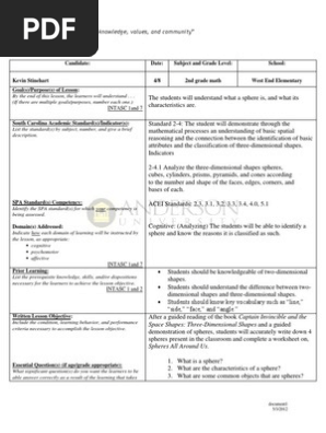 Spheres Lesson Plan Shape Educational Assessment