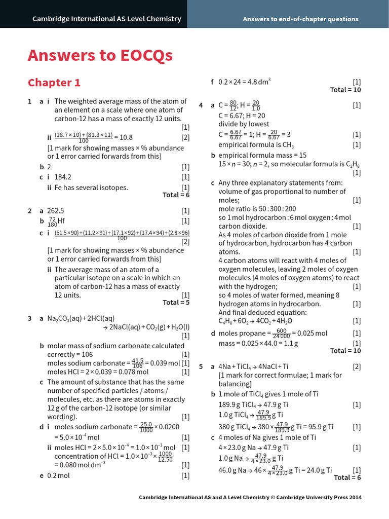 Answers To Eocqs Cambridge International As Level Chemistry