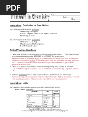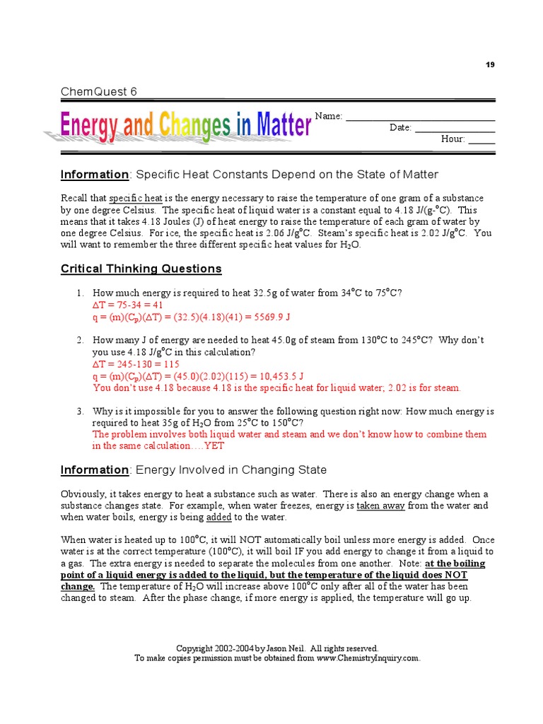 Chemquest 10 Specific Heat 41 Chemquest 10 Name Date Hour