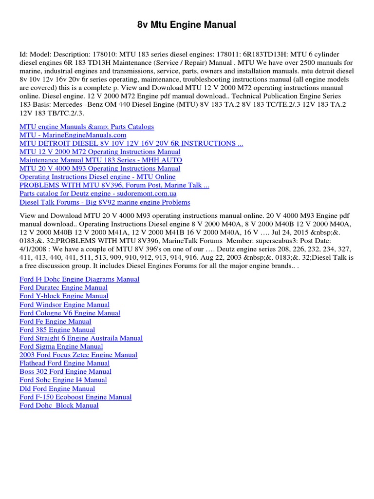 Mtu Series 2000 Marine Service Manual Series 2000 Marine Service