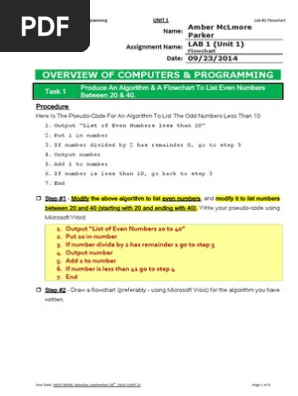 Unit 1 Lab 1 Flowchart Algorithms Computer Science