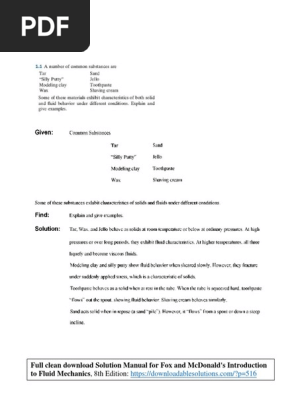 Solution Manual For Fox And Mcdonalds Introduction To Fluid