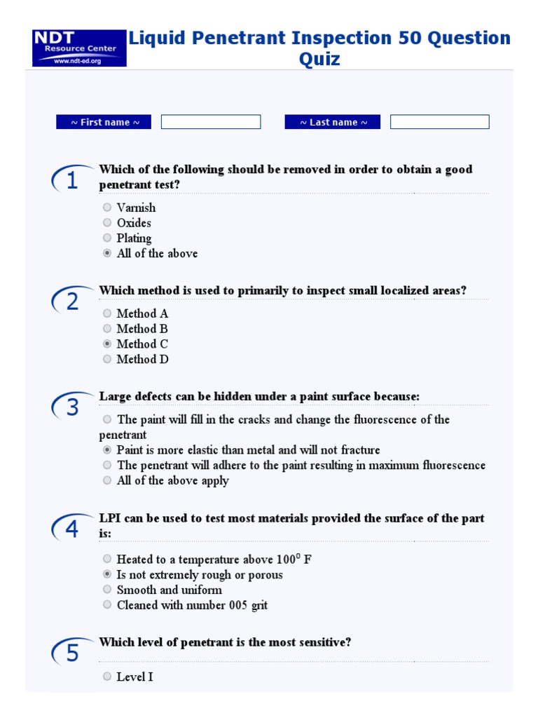 Question Answer Liquid Penetrant Testing Service Service